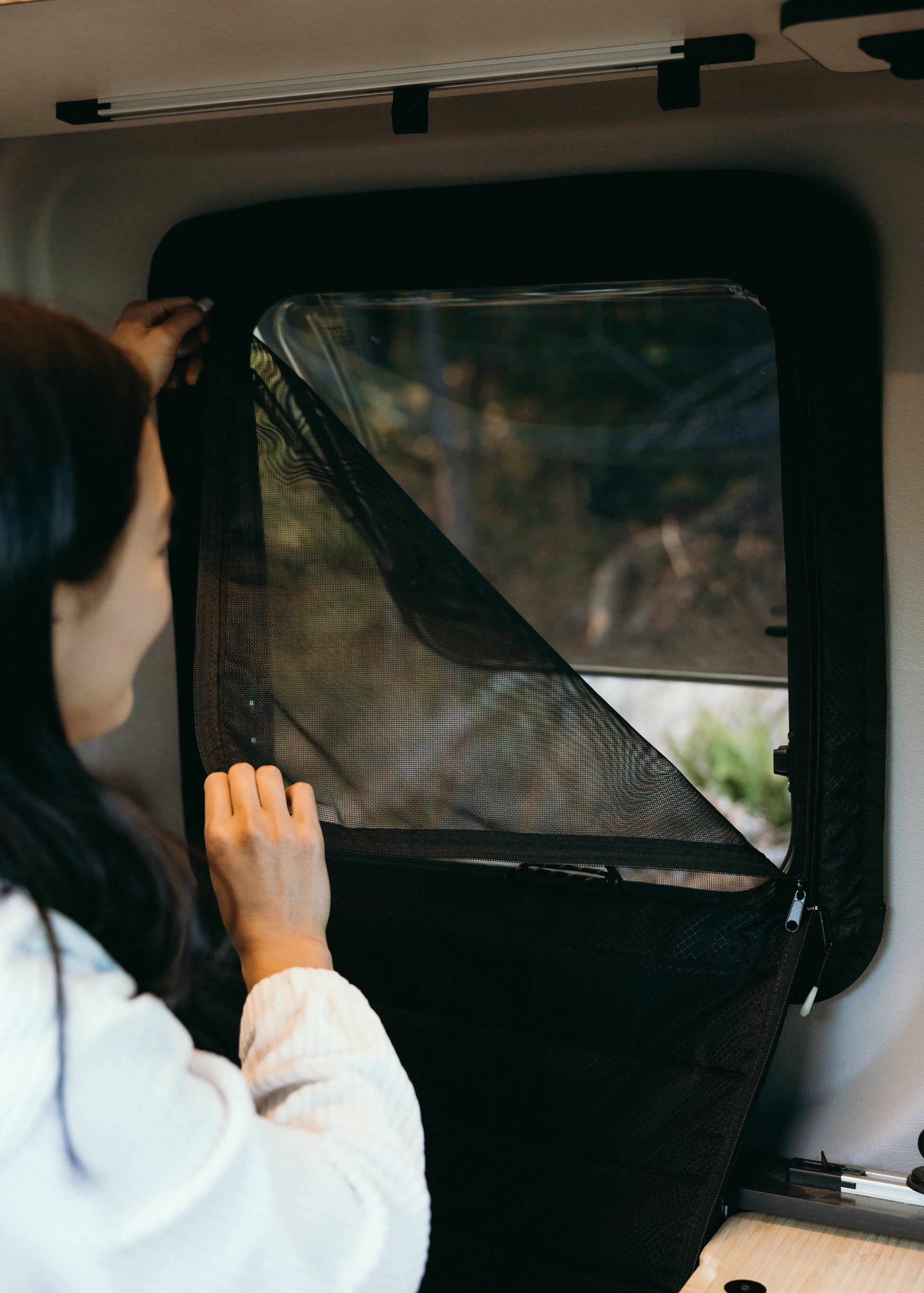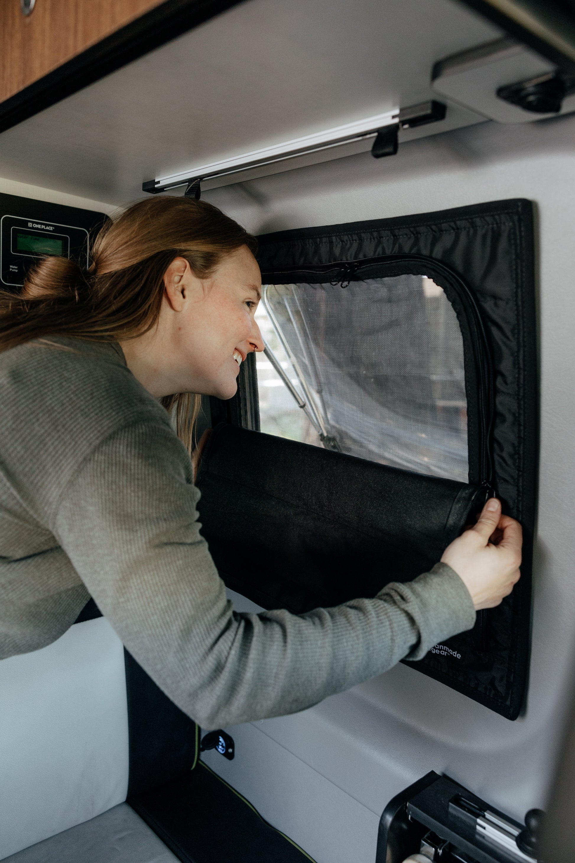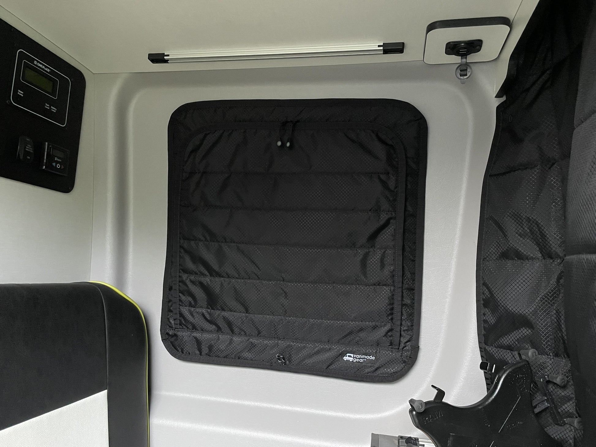 Maintain your privacy and keep the temperature regulated in your van with our Revel Dinette window cover. They block out UV rays, insulate, and reflect radiant heat, adding an extra bubble of insulation to keep your van cooler in the summer and warmer in the winter.