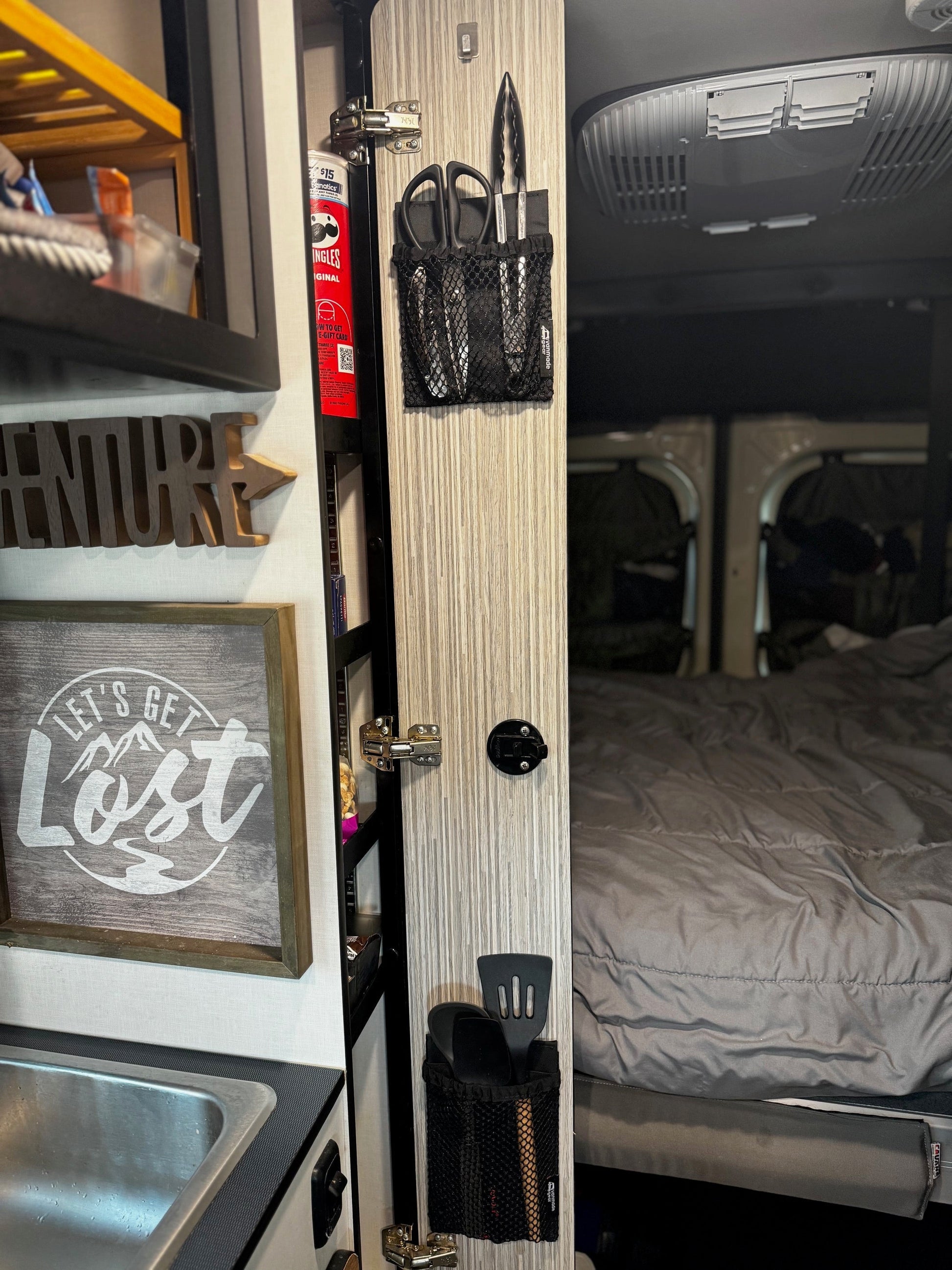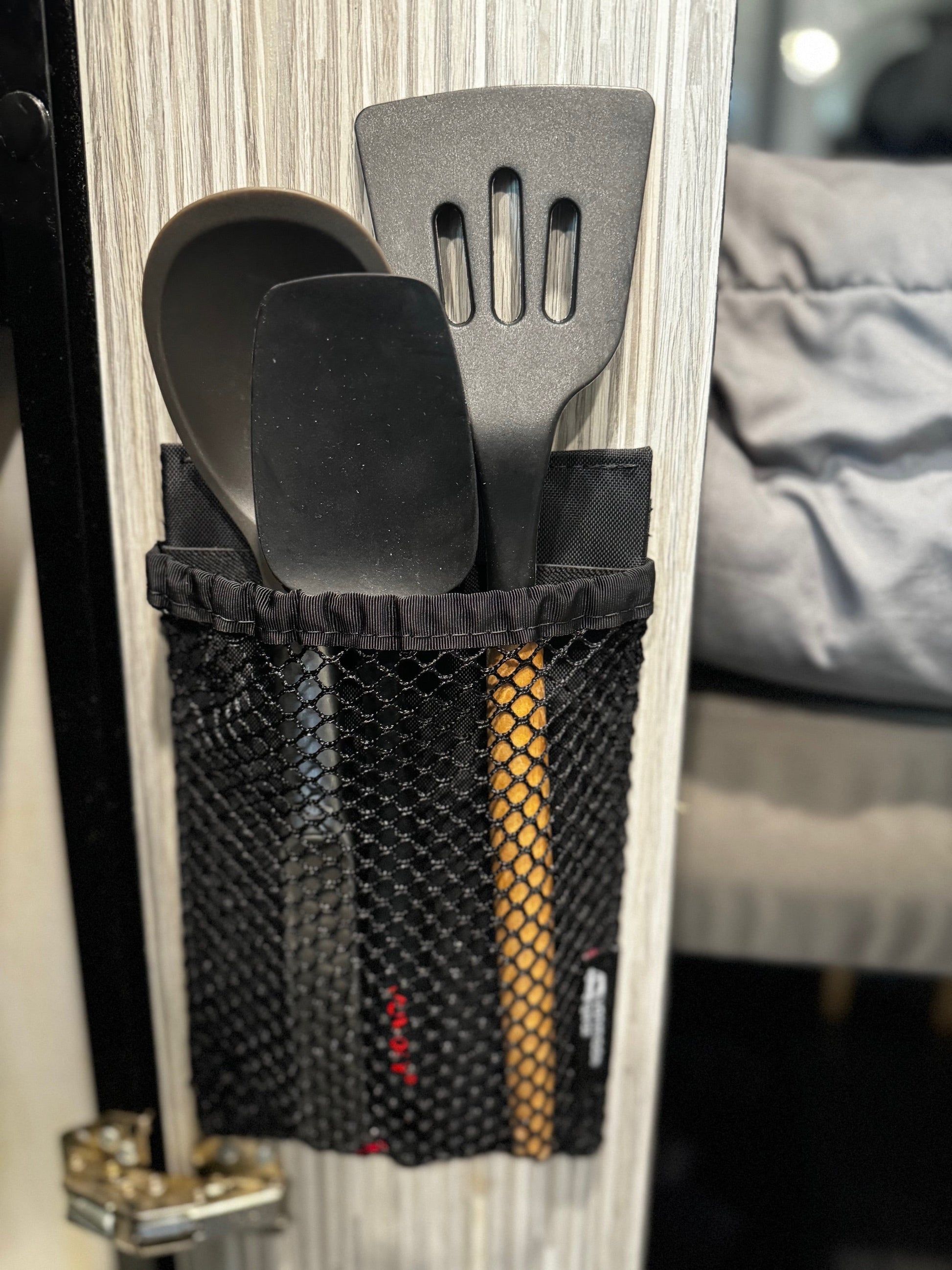 Storage space can be hard to come by in a Revel. These pantry organizers mount to the inside of your pantry door, giving you extra space for utensils.