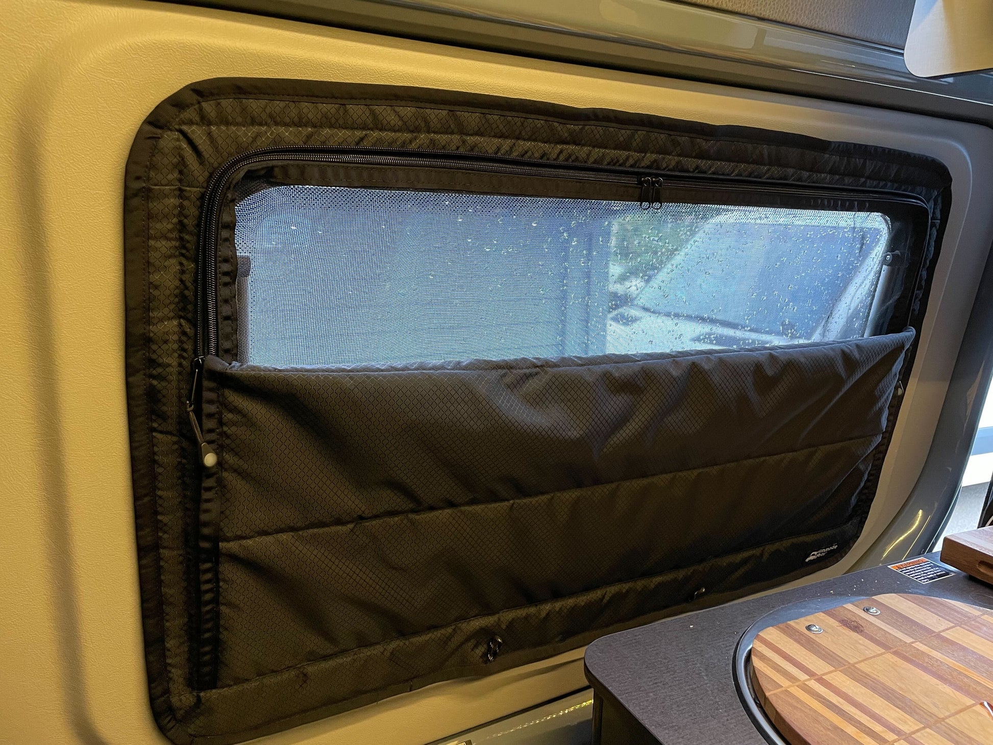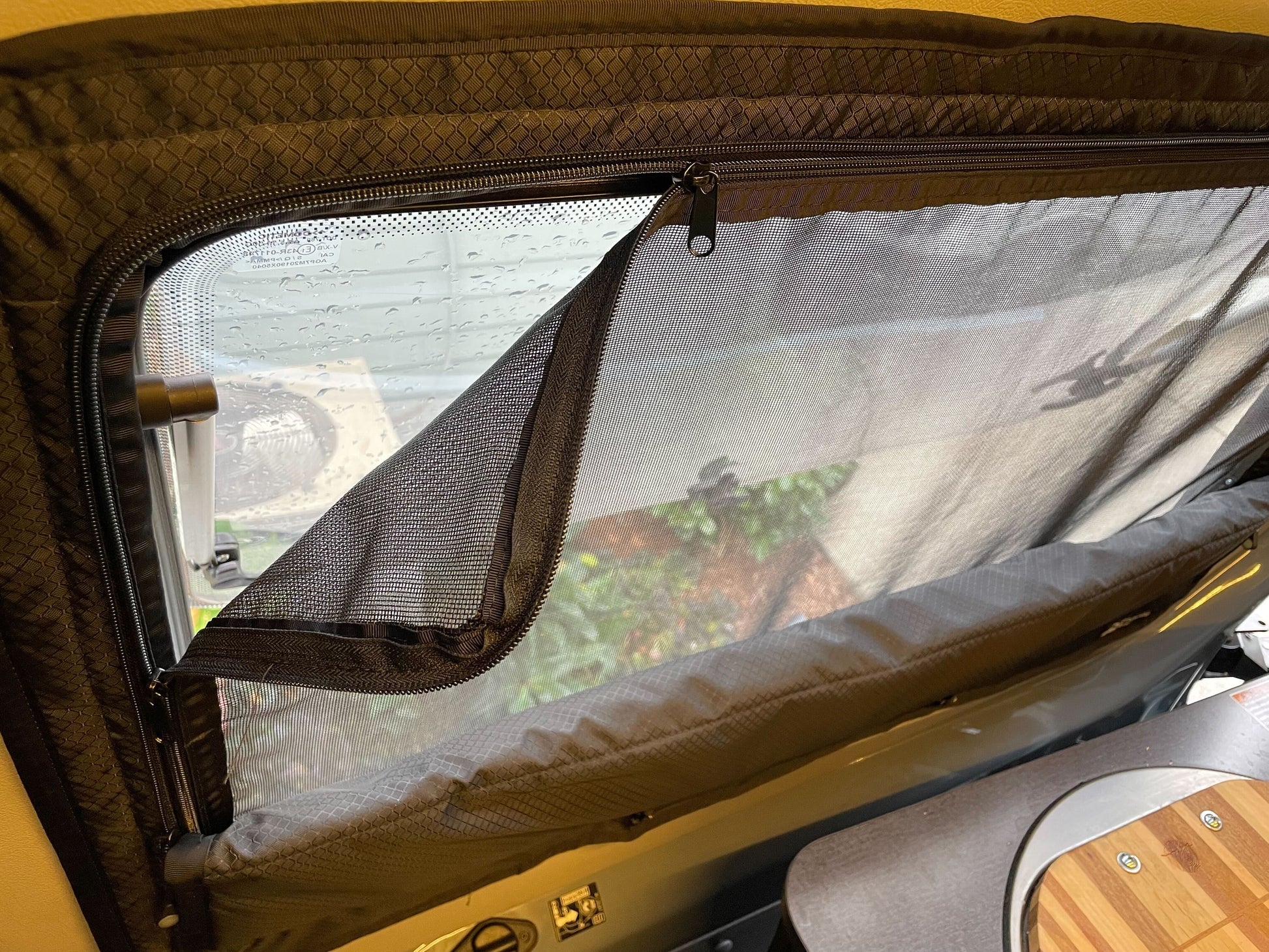 Vanmade's design enables full black-out coverage and privacy. The zippered design allows you to lower the shade from the top down, allowing natural sight lines and privacy. The integrated screen keeps bugs out, while fresh air comes in.
