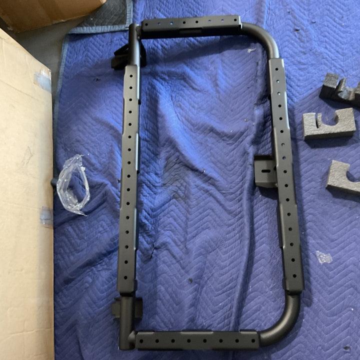 Sprinter bike rack and box carrier frame for rear door mounting on Sprinter vans