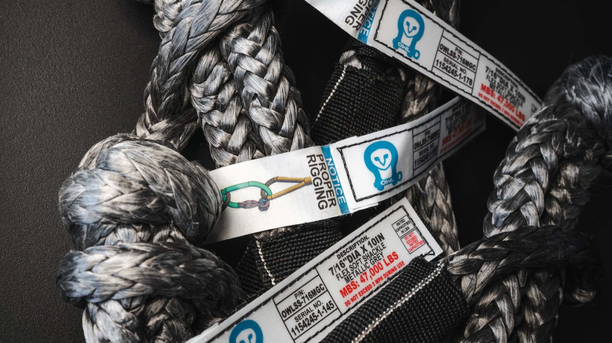 HMPE SOFT SHACKLE – Owl’s High Modulus PolyEthylene (HMPE) 7/16” Soft Shackles use the strongest ‘double loop’ configuration, and has a 10” pull-to-pull distance when closed. With a 47,000lb Minimum Breaking Strength, it is strong enough for use in all vehicle recovery points listed on Owl’s Static, Kinetic (Dynamic) and Winching User Guides - to include at the anchor end of a pulley block with up to a 12,000 lb Winch.
