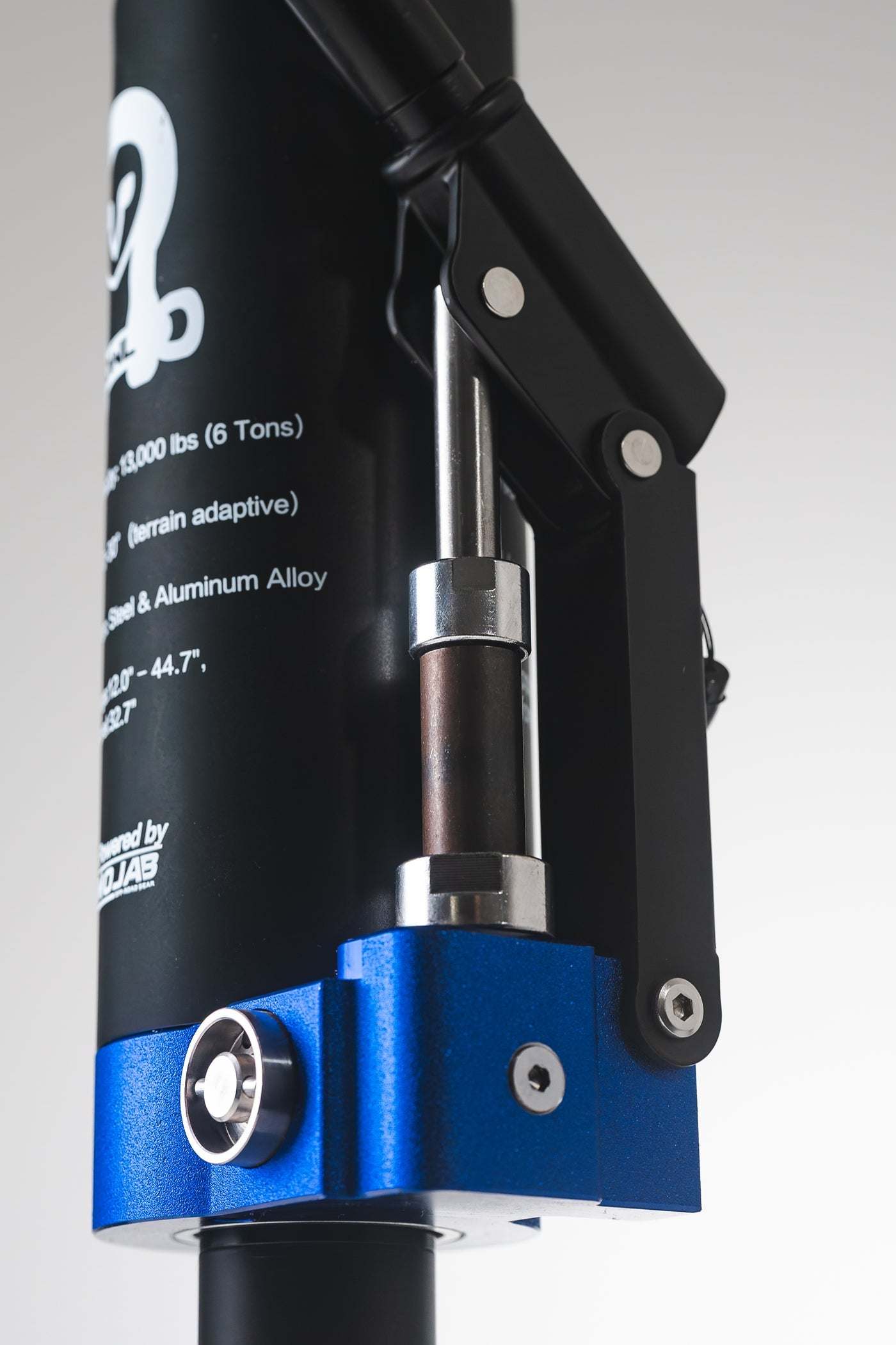 Grenadier SUV truck jack high performance blue and black bottle jack close-up