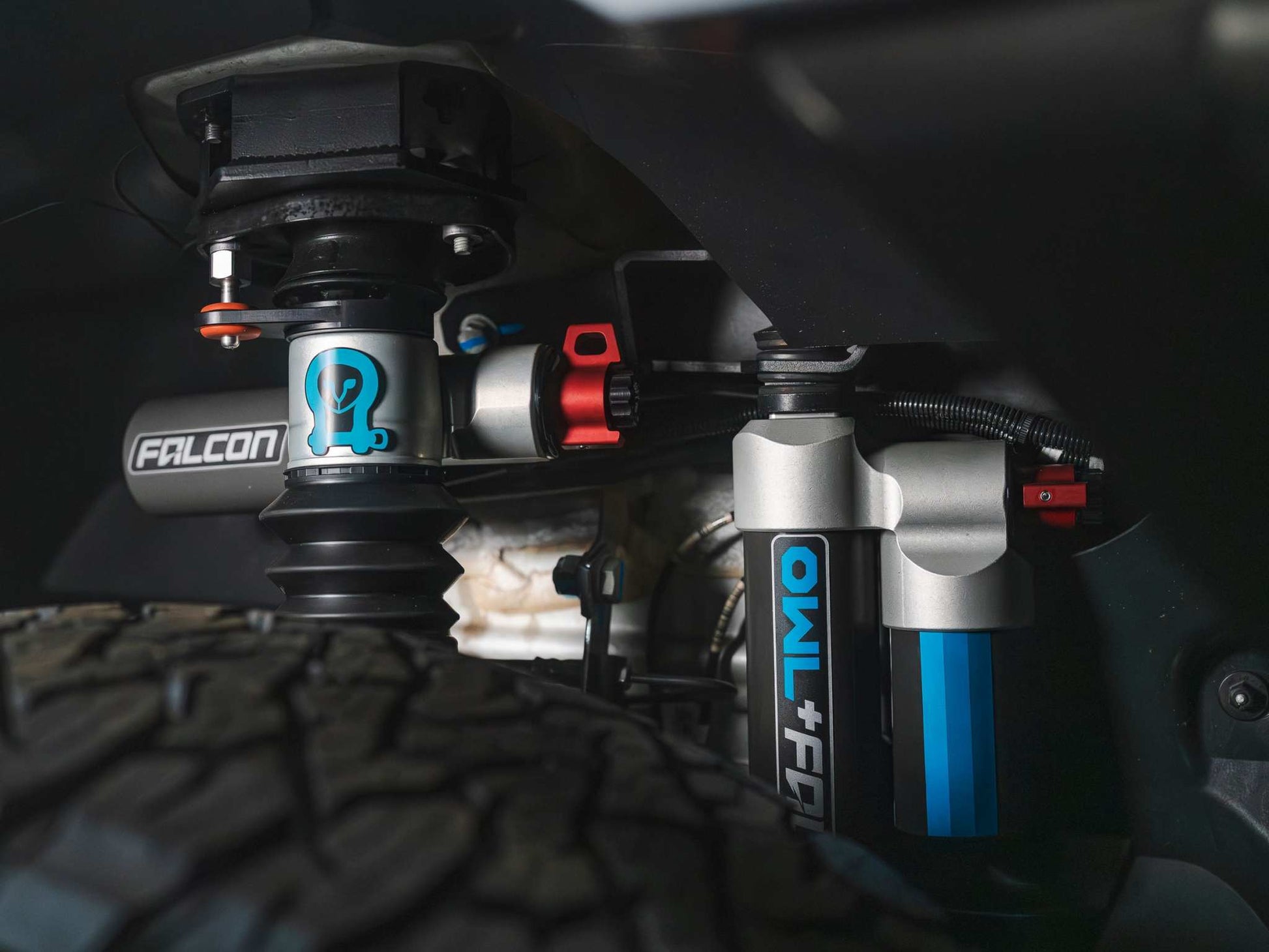 Arrow Shocks - 4x adjustable Falcon piggyback reservoir aux dampers with three adjustment modes.