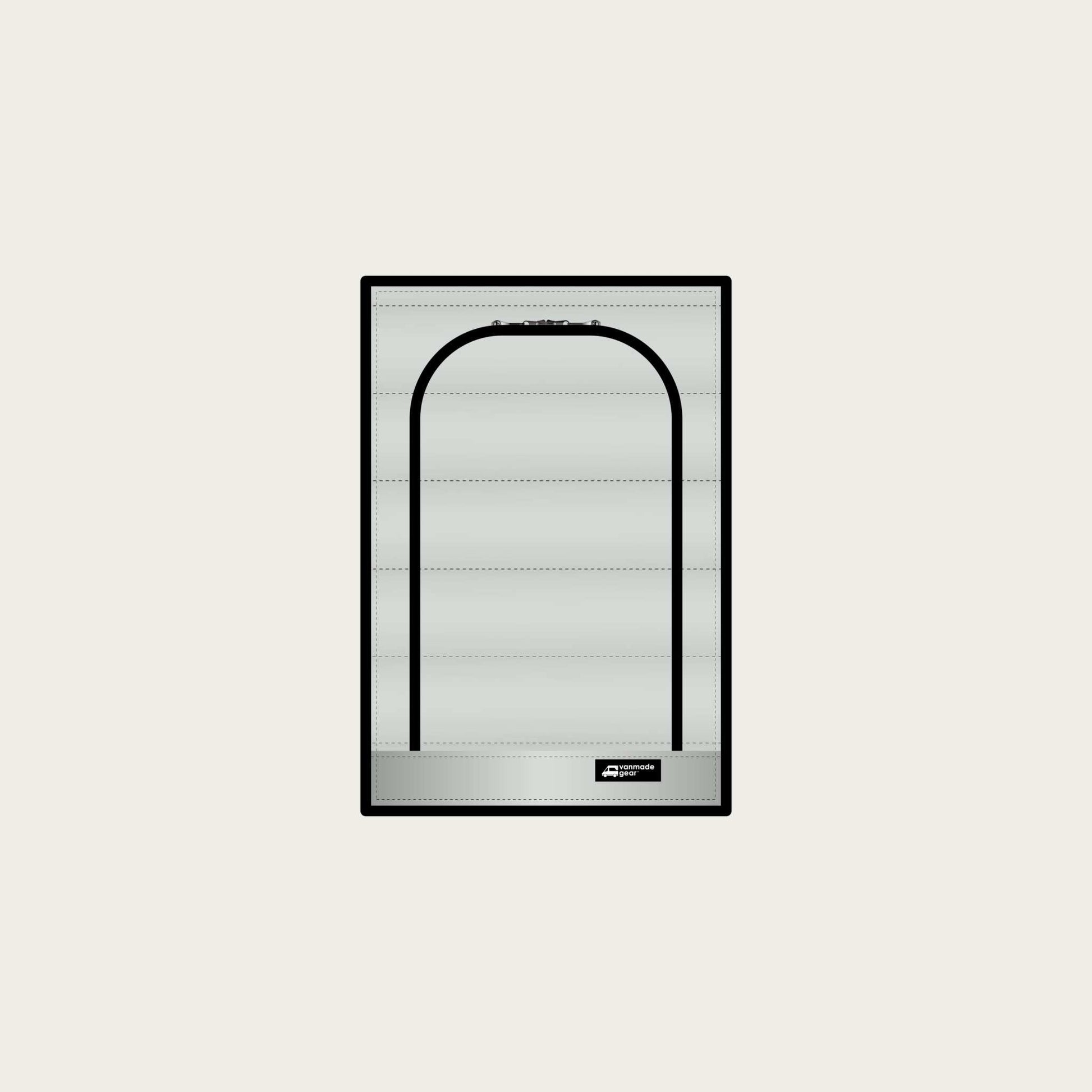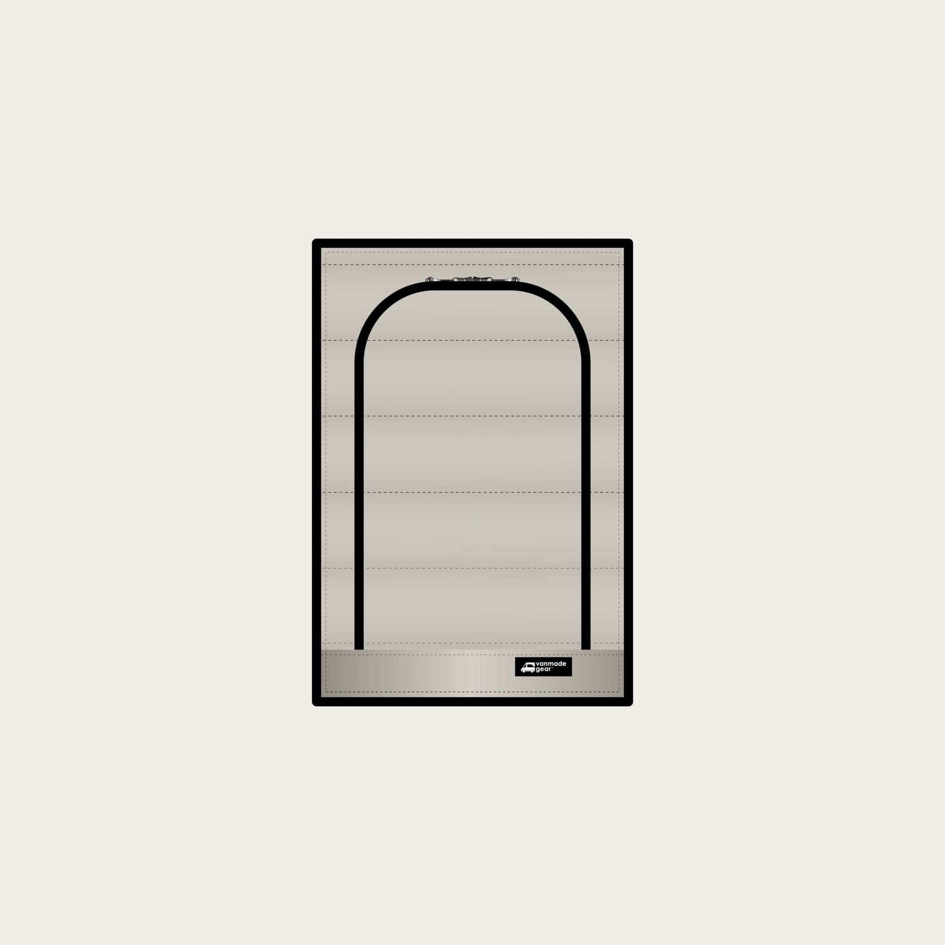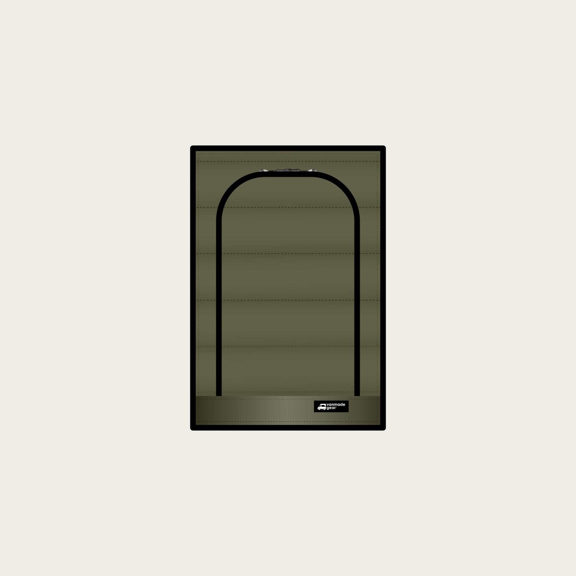 An insulating window shade for Ekkos fitted with an aftermarket Arctic Tern window. Easy attachment and removal with Velcro strips.