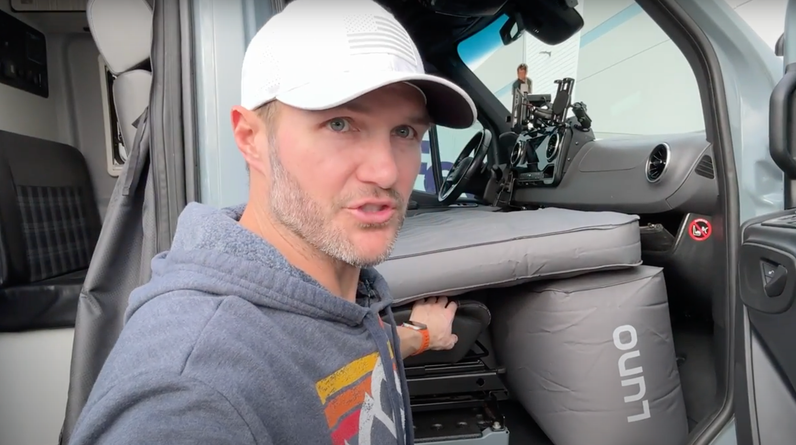 Turn unused space into a bonus bed. The Luno Front Cab Mattress transforms your Sprinter’s front seats into a comfortable, full-length sleeping area—perfect for kids, guests, or anyone traveling with a crew. Designed to fit snugly across the driver and passenger footwells, it creates a flat, supportive surface that inflates in minutes and stows compactly when not in use.