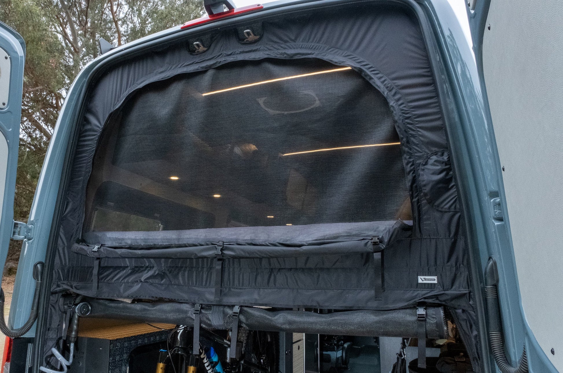Protect your Sprinter van interior from rain, wind, and insects with the VANNON Storm Wall, a dual-purpose rear door barrier system built for all-season travel. Whether you're caught in a storm or soaking in the summer breeze, this modular system adds comfort and flexibility without limiting access to your rear garage area.